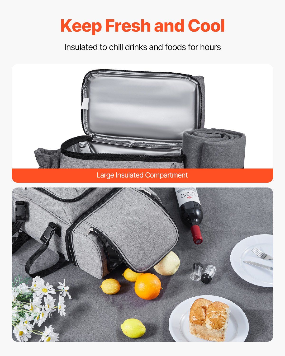 Home > VEVOR Beach Picnic Backpack Bag for 4 Person with Cooler Compartment Grey