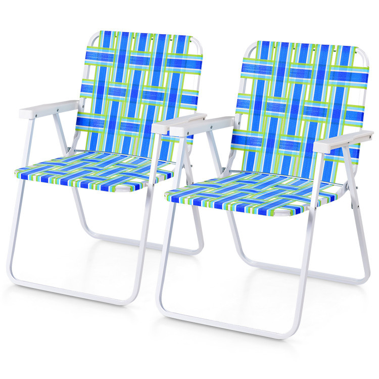2 Pieces Folding Beach Chair Camping Lawn Webbing Chair